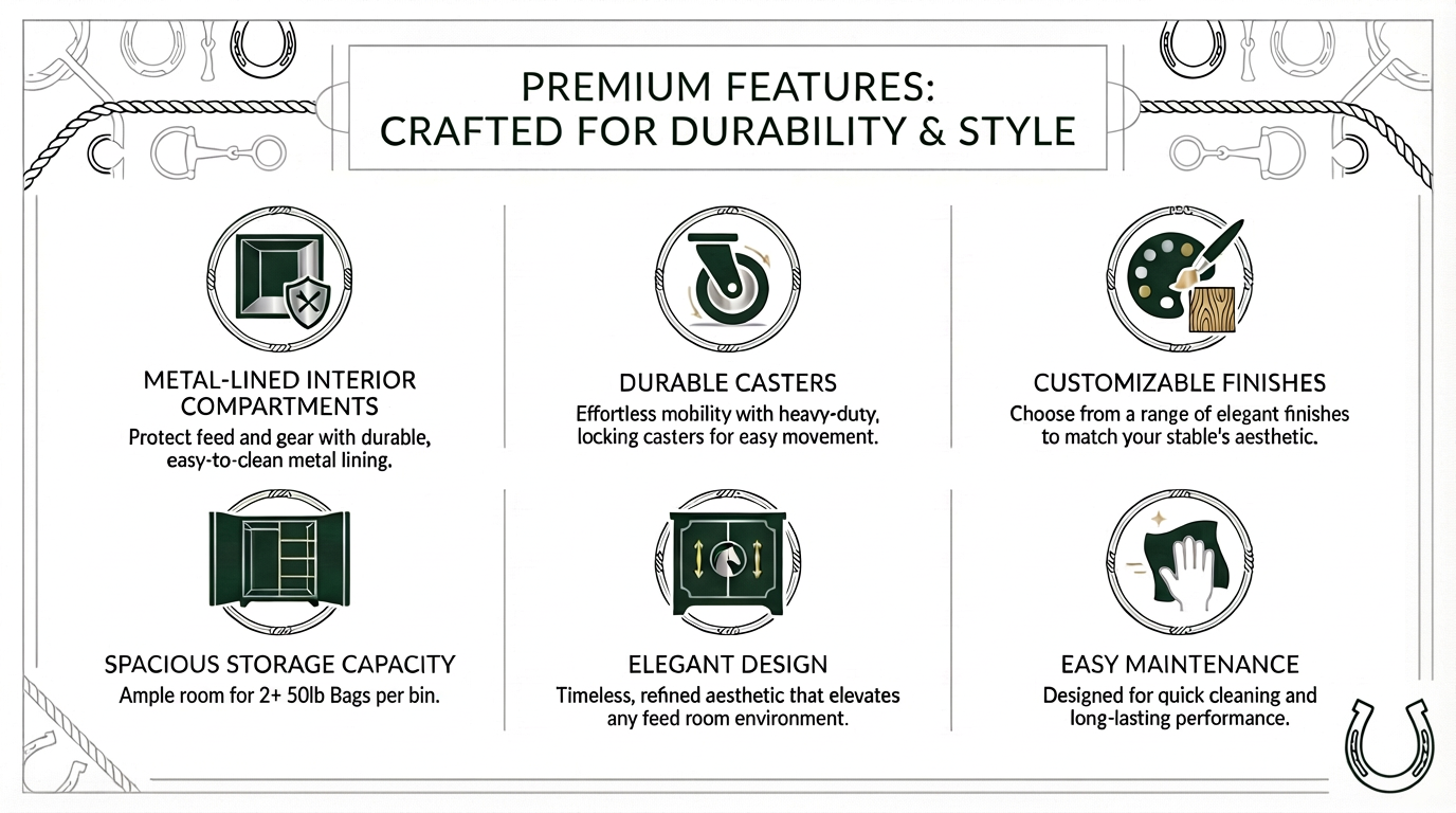 Designed to elevate your feed room and integrate seamlessly with luxury tack-room cabinetry, this piece is both beautiful and built to last.