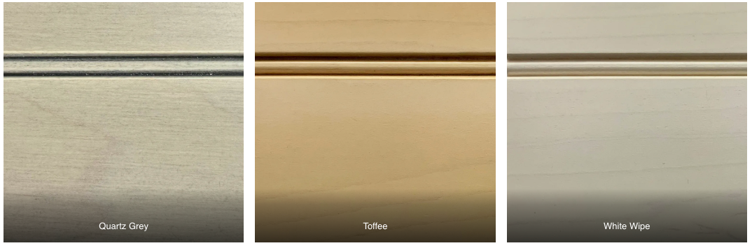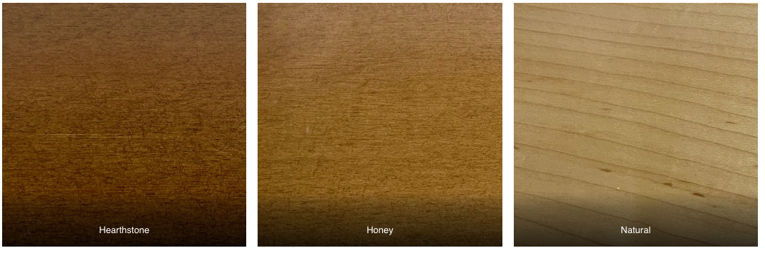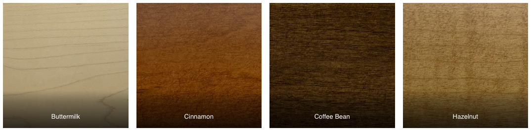 The following finishes are available on cabinets made from maple. White maple is a mildly grained hardwood that is predominantly blonde in color. It may have light and dark streaking through the grain, as well as spots of darker mineral coloration. Maple is tight-grained and moderately strong. Hard white maple, which Adelphi uses, is cleaner, whiter, and contains far less mineral coloration than soft white, used by some other manufacturers.