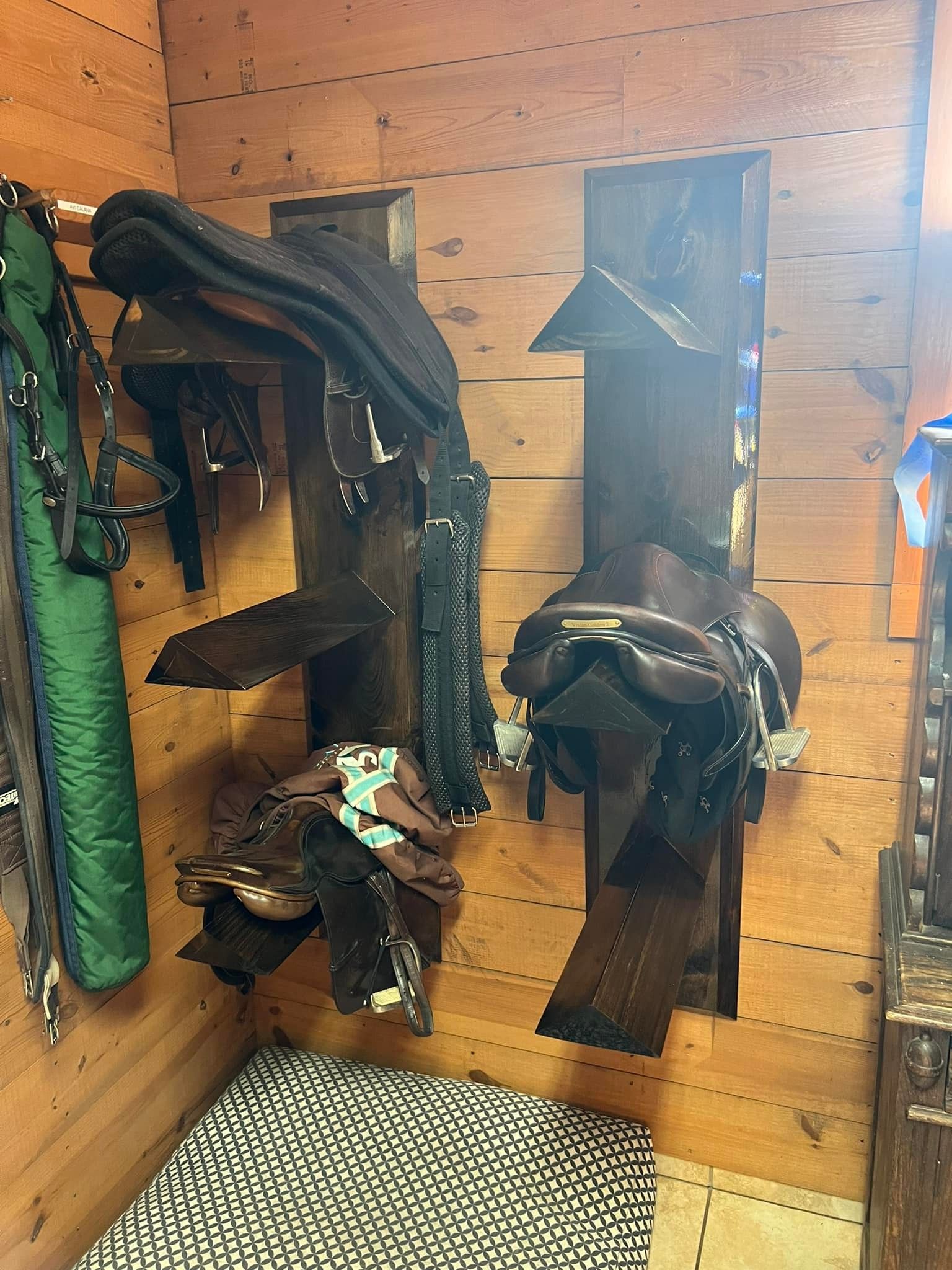 Tailored Craftsmanship – Every saddle rack and cabinet is built to your specifications, ensuring a seamless fit within your luxury tack room.